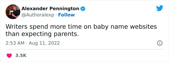 Expecting parents do not face the prospect of needing twenty names.