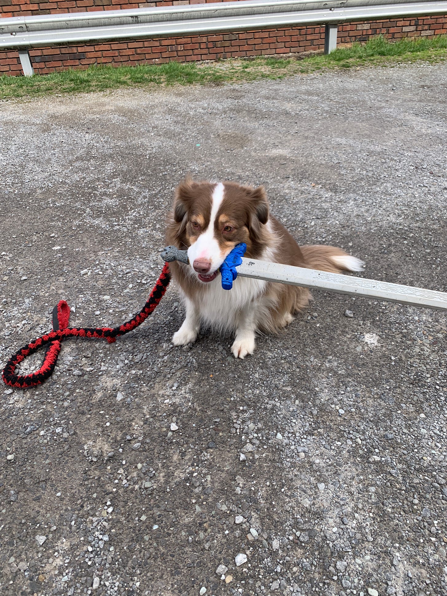 There are times when I’d swear the city is trying to get my attention. “Hey! Sam! What about this? Kind of neat, eh?” That’s how I met Trixie, the sword-wielding dog. She used to haul around a stuffed animal; now she carries a sword down these mean streets. It’s a foam sword, mind you, because the streets aren’t all that mean. But if she runs into a foam monster, she’s prepared.